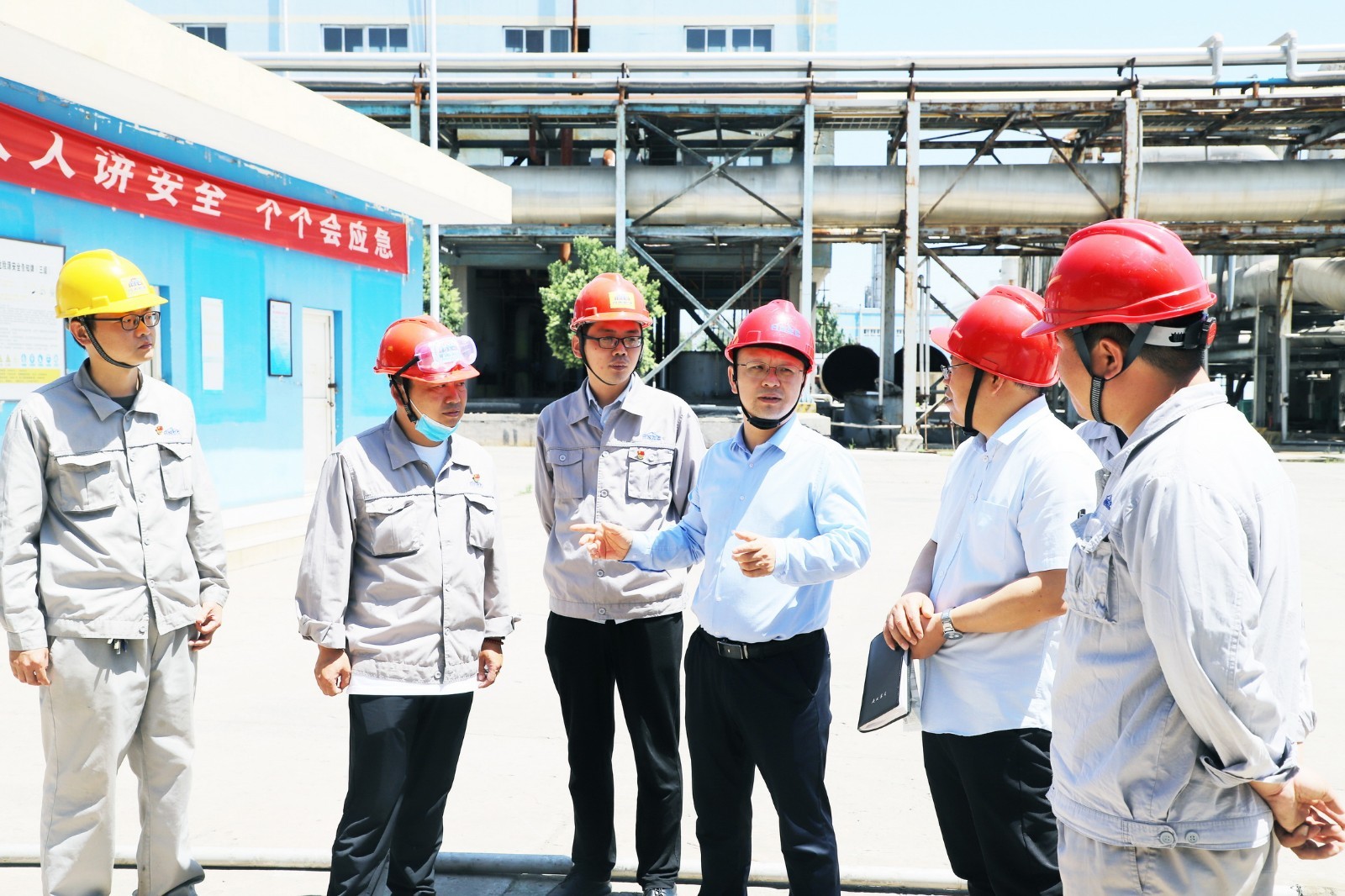 在生產(chǎn)廠區(qū),調(diào)研組深入生產(chǎn)一線和第二套甲胺裝置檢修現(xiàn)場了解安全生產(chǎn)和系統(tǒng)檢修情況,強(qiáng)調(diào)要規(guī)范操作確保檢修安全,同時要求工會做好生產(chǎn)和檢修后勤保障服務(wù)工作。